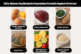 Penyembuhan stomatitis angularis tidak hanya bergantung pada pengobatan luar, tapi juga didukung oleh asupan makanan bergizi. Konsumsi makanan kaya vitamin B, zat besi, zinc, dan antioksidan secara rutin dapat mempercepat pemulihan serta mencegah kekambuhan.
